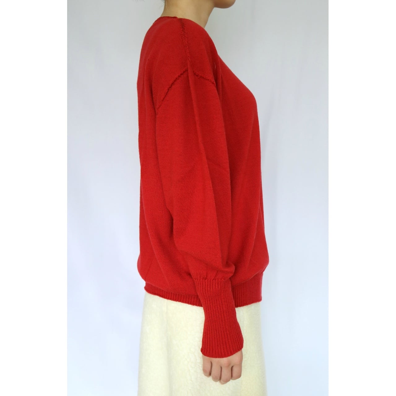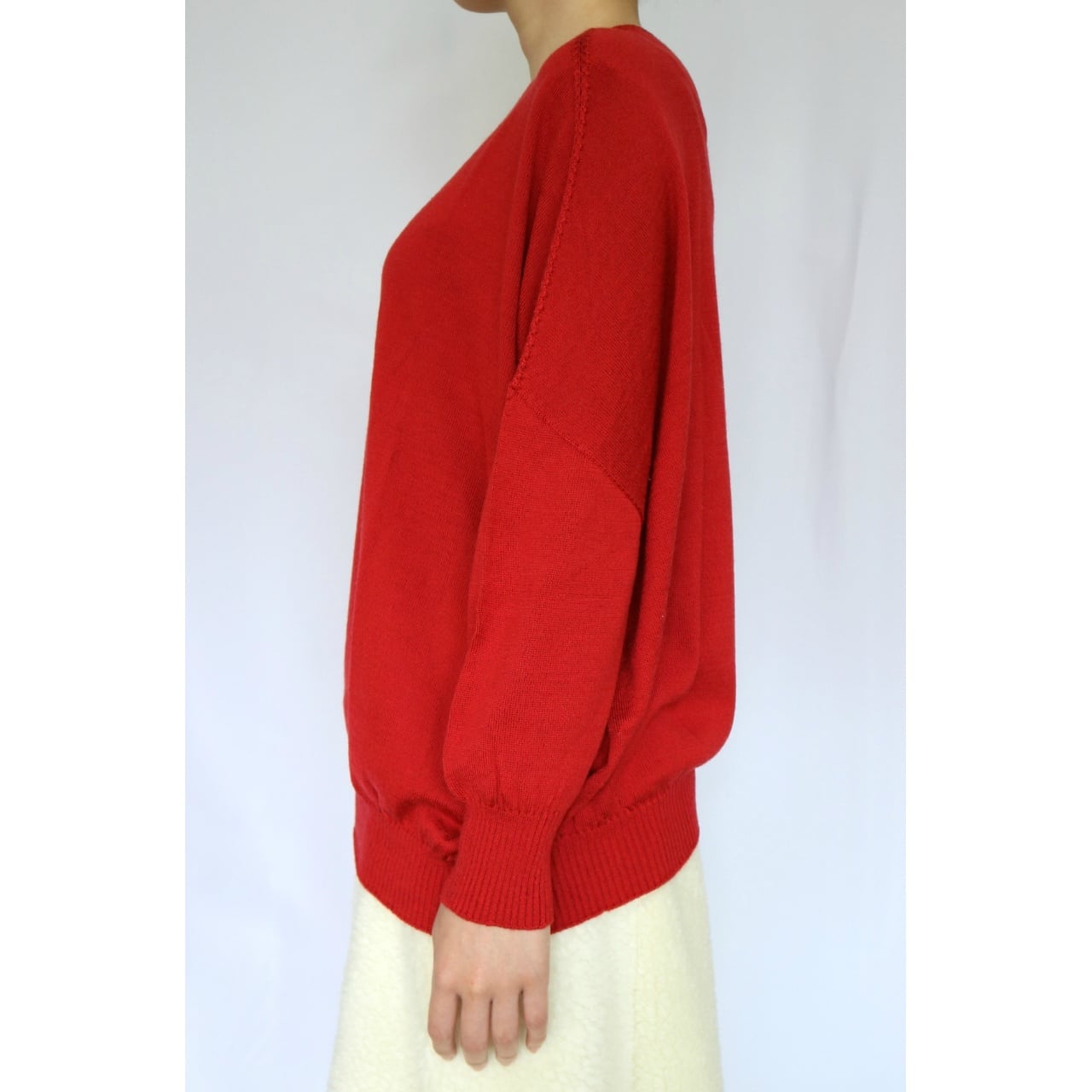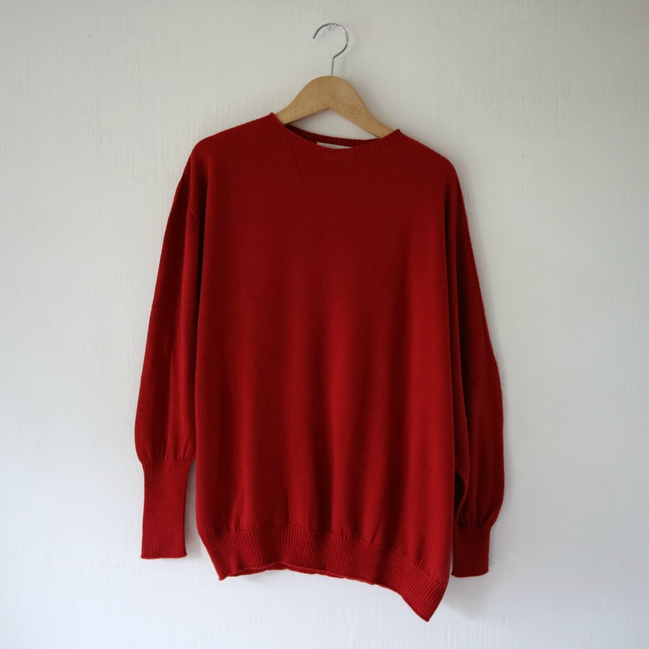 左右で身幅が違うアシンメトリーなデザインのシルクウールニットです。