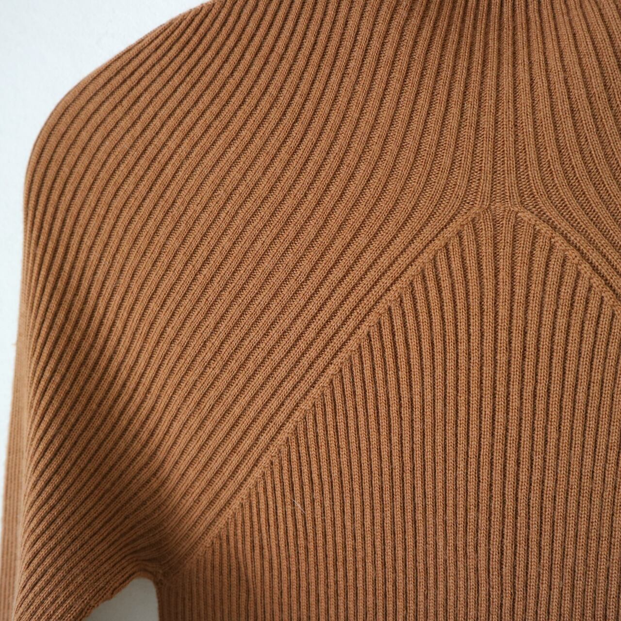 胸元の編地デザインがアクセントになった太めリブのタートルニットです。